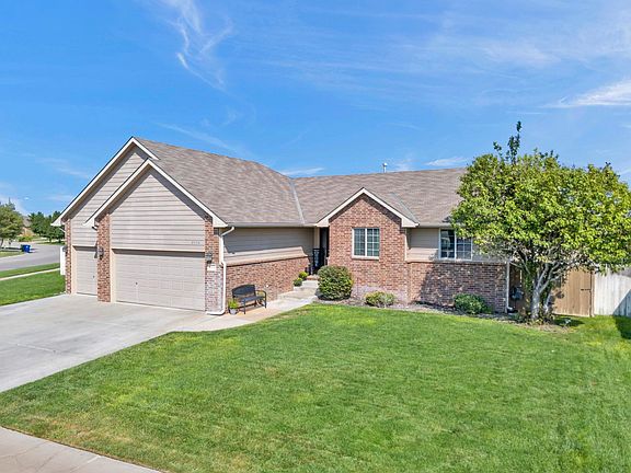 This expansive 6-bedroom, 3-bathroom home in the sought-after Goddard School district is packed with features and upgrades, making it a standout property. Notably, the specials will be paid off this year, adding significant value. A brand-new roof will be installed before closing, ensuring the home is ready for its next owners. The property is situated on a large lot with a 3-car garage and a spacious backyard that includes a sprinkler system and well, providing plenty of outdoor space for activities and easy maintenance. Inside, the open floor plan is accentuated by vaulted ceilings that create a bright and airy feel. The living room features a wood-burning fireplace, perfect for cozy nights, while the open wood railing adds a touch of elegance. The kitchen and dining area, which is equipped with new bamboo wood floors, granite countertops, and modern fixtures, provides a stylish and functional space for everyday living and entertaining. The primary suite offers a luxurious retreat with a spa-like bathroom, including a jetted tub, separate walk-in shower, dual sinks, and a generous walk-in closet for ample storage. Additional conveniences on the main floor include a laundry room, making daily tasks more efficient and organized. The fully finished view-out basement is a major highlight, offering three additional bedrooms, a full bathroom, a large rec room, and a wet bar, making it perfect for entertaining or providing extra space for family and guests. The covered back deck offers a comfortable space to enjoy the outdoors, overlooking the expansive backyard. With all these features, including a new AC unit and numerous upgrades, this home offers the perfect balance of convenience and modern living. It’s ready to welcome its next owners who are looking for a blend of comfort and style in an excellent location.