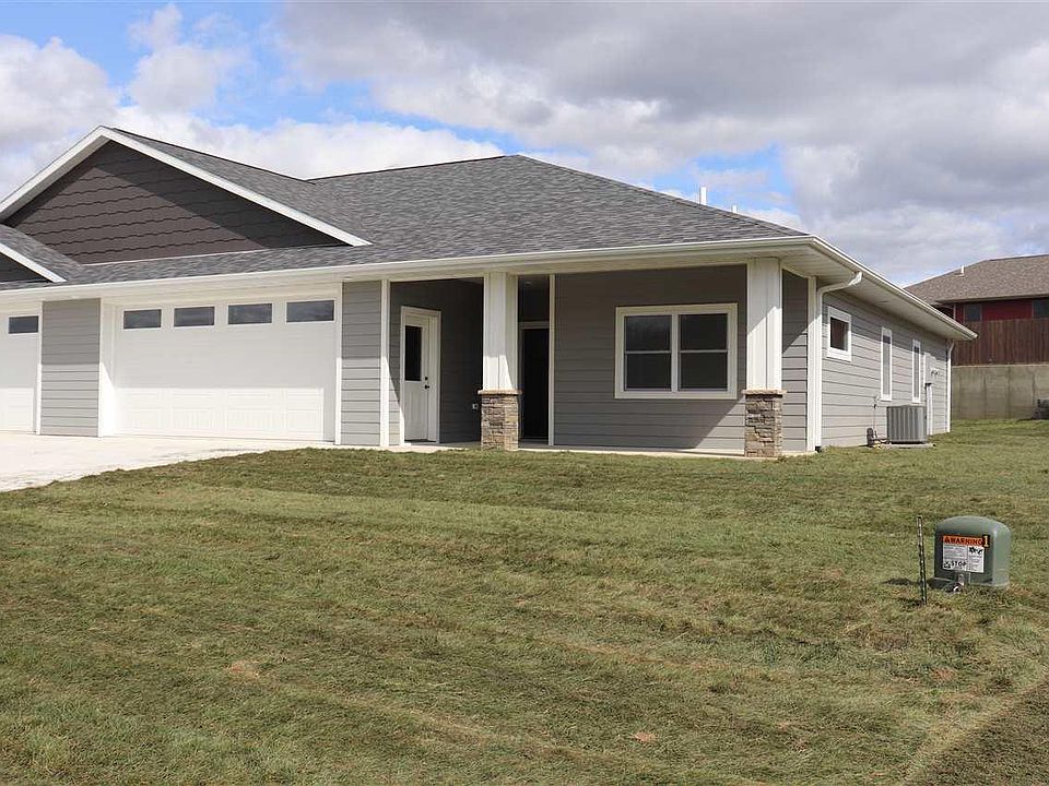 Step inside this beautiful 2-bedroom, 2-bath condo offering style, comfort, and thoughtful design. The heart of the home is the custom kitchen, featuring rich cabinetry, sleek white granite countertops, a convenient corner pantry, and plenty of space for cooking and entertaining. The spacious master suite is designed with accessibility in mind, boasting a zero-entry shower and private bath. You’ll love the details throughout the home, from 3-panel doors to the mix of vinyl plank, tile, and carpet flooring. The open-concept living area showcases a vaulted ceiling, while the master bedroom impresses with a tray ceiling. No basement to manage here—just easy, main-floor living with comfort at every turn. Energy efficiency and warmth are provided by in-floor heat plus a gas furnace. An oversized garage gives you plenty of room for vehicles, hobbies, and extra storage. And the biggest plus -- One year left on the tax abatement! This condo blends modern finishes with practical features—ready for you to make it your own!
