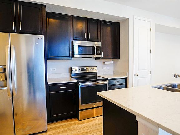 Step into the inviting ambiance of the oversized living room, adorned with modern flooring that adds a touch of elegance to the space. The kitchen is a culinary enthusiast’s dream, featuring sleek granite countertops, top-of-the-line stainless steel appliances, and a convenient center island perfect for meal preparation and casual dining alike.