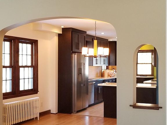 The house was recently renovated with updated appliances, in floor heating and revamped bathroom. There are 2 Fireplaces, one on the Main Level and the other in the Finished Basement. There are 2 BR's on the main floor and the basement has recently received a new floor and paint. It is a completely finished basement which also has a fireplace, washer and dryer room along with a toilet and shower. Hardwood floors throughout, high efficiency boiler. No garage but plenty of on street parking in front of the house. Beautiful yard with plenty of area for grilling and gardening. Large yard/garden to be shared with owner.