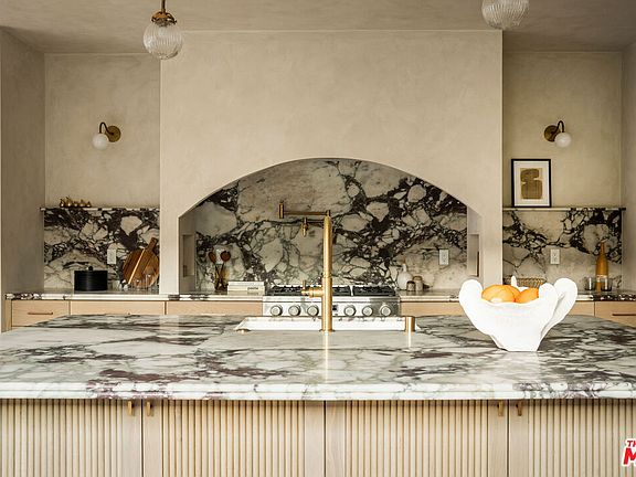 Newly built in 2025, this architectural Frogtown compound embodies the best of modern California living - where high design meets comfort, privacy, and functionality. The gated property includes two stunning new residences: a 3 bed, 2.5 bath two-story main home with attached 2-car garage and a sophisticated 1 bed, 1 bath ADU with its own rooftop deck and outdoor kitchen. Each home boasts impeccable designer finishes with lush landscaping. Together, they form a serene retreat in one of LA's most dynamic and creative neighborhoods. Past the beautifully landscaped front yard, the travertine-clad main home invites you through a graceful arched entryway into a space that feels both sculptural and warm. Just beyond the entry hall, a dramatic curved plaster staircase sweeps upward to the second level. An atrium with its own limestone fountain and a Weeping Acacia tree is viewable through expansive glass walls, filling the home with light and tranquility. The powder room, conveniently located near the front door, features Roman clay walls and a Calacutta Viola marble sink. The open-concept main level offers a seamless flow for entertaining and everyday living. The living room features a gas fireplace flanked by custom, arched built-ins, while the adjoining dining area is anchored by stunning, floor-to-ceiling built-in buffet shelving and encircled by voluminous Milgard sliding doors that open seamlessly to the lush backyard. At the heart of the home, the designer kitchen showcases a striking rectangular island clad in fluted white oak, paired with honed Calacatta marble countertops, a paneled dishwasher, and premium THOR appliances - including a six-burner range and stainless steel refrigerator. The kitchen features hidden storage behind sliding cabinet pocket doors, and the built-in microwave tucked within the pantry adds sleek convenience. All three bedrooms are upstairs, each with new Milgard windows and limewash walls. The two secondary bedrooms share a stylish bathroom featuring a bathtub and shower, while the nearby laundry closet provides everyday convenience. The primary suite is a peaceful sanctuary featuring limewash walls, a large walk-in closet concealed by wood-fluted doors, and a private terrace with built-in seating that overlooks the backyard. The spa-inspired en-suite bath tiled in Tundra marble features a soaking tub, a large standing shower, a dual-sink vanity, a water closet, and windows that bathe the space in natural light. At the rear of the property, the 1 bed, 1 bath all-electric guest house (ADU) mirrors the main home's style and craftsmanship. The open living space features warm and inviting engineered oak wood floors, limewash walls with a custom-built seating nook, and a full kitchen with beautifully unique Ceppo Grey marble countertops. A tranquil bedroom with dark limewash walls, a stunning bathroom with limestone tiles, and a stacked laundry in a hallway closet make it a fully self-contained space. Outside, the ADU's private rooftop deck is perfect for sunset gatherings, with bar-top seating and built-in BBQ, beverage refrigerator, and sink, creating a true hideaway for guests or an ideal live-work retreat. The backyard is a lush oasis designed for dining and relaxation, featuring a built-in arched seating bench and romantic greenery throughout. Additional highlights include a finished two-car garage with EV outlet, and all-new systems, including roof, foundation, HVAC, plumbing, sewer line, and electrical. Ideally situated in Frogtown, just steps from the LA River bike path, this exceptional compound is surrounded by the area's most beloved local spots, including Wax Paper, Lingua Franca, Loreto, Salazar, and Spoke Bicycle Cafe. Whether you're looking for a design-forward sanctuary or a flexible investment opportunity, this modern compound offers the best of both worlds: style, sophistication, and serenity in one of LA's most sought-after neighborhoods.