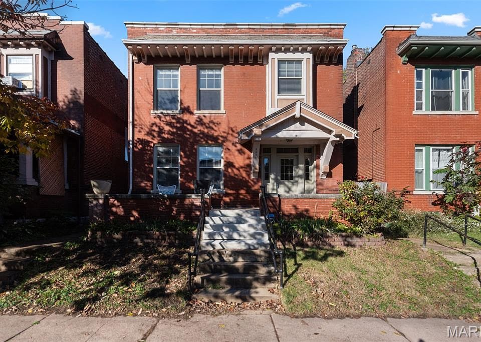 Est 1912. Two-story Shaw brick beauty mixes classic craftsmanship with historic charm, a little personality and an amazing front porch. The main floor feels open and bright with hardwood floors, a kitchen that makes hosting effortless, plus a cheery sunroom that’s perfect for morning coffee, your plant collection, or pretending you’ll finally finish that puzzle; all freshly painted throughout. Upstairs are three bedrooms, including a primary suite, all refreshed with new paint and carpet. Loads of closet space and a great little deck off the back bedroom for watching the sunsets. Awesome backyard comes with a fire pit for casual evenings, space for raised vegetable beds, and a chicken coop ready for your flock. Classic brick curb appeal, sensible, livable spaces — and yes, Tower Grove Park (Farmers Market, yoga, festivals, soccer practice) is just half a block away. Close to highways, shopping, dining and all the best that Shaw has to offer.