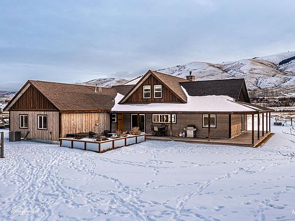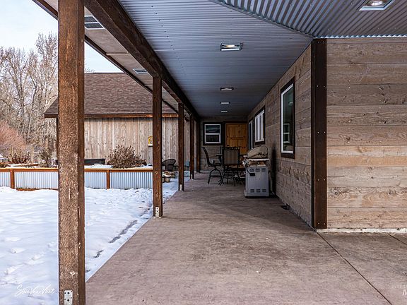 Custom home with Lemhi River frontage. Surrounded by the Beaverhead and Lemhi Mountain ranges, this beautiful home sets on 11.20 acres, 1873 water rights and fenced. Open floor plan with Hickory floors, vaulted open-beam ceilings and amazing natural light throughout home. Spacious kitchen boasts granite counter tops, gas oven/range, hickory cabinets, walk-in pantry, breakfast bar and views of the Lemhi River. Owner suite includes walkout patio door to the 3/4 wrap-around covered concrete patio, walk-in closet and attached bath with double sinks, heated tile floors, walk-in shower and clawfoot tub with a river view. Guest rooms are both very roomy with lots of light. Guest bath is complete with tub/shower, granite counter, vanity and tile floor. Upstairs loft is currently used as an office/den and open to the living room below. Mud room/laundry with deep sink has access from the covered back patio and garage. Spacious full 2-car garage is finished and insulated with mechanical room plus storage.