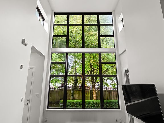 Floor-to-ceiling windowsOpen concept kitchenGranite countersPrivate green space