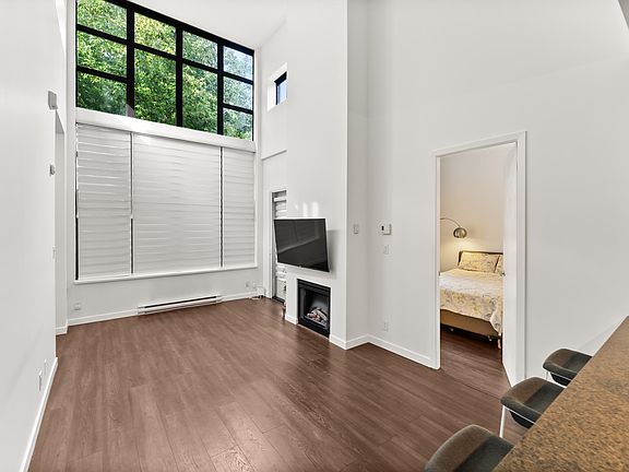Rarely available concrete-built loft townhome by award winning developer Millennium Group! Soaring 18-ft ceilings w/ floor-to-ceiling windows, 2 spacious bdrms with great separation, 2 airy baths, cozy electric fireplace & an open concept kitchen w/ granite counters, s/s appl & ceramic b/s. Enjoy 2 patios for outdoor dining & BBQs plus private green space & 2 convenient entrances—one with direct access to the garage and your two parking stalls. Steps to Solo District eateries, Gilmore SkyTrain, Whole Foods, trails, Brentwood Town Centre & much more! OMA amenities include indoor pool, hot tub, sauna, steam room, fully equipped gym & rooftop garden. Recent upgrades: new roof, 2nd bath stand-up shower, fresh paint & motorized blinds throughout. 1 storage locker included. Don't miss this gem!