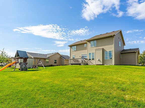Upstairs, the oversized primary suite (App 19' x 13') offers a large walk-in closet, tiled walk-in shower, bubble tub, and dual vanity. A convenient second-floor laundry, three additional bedrooms, and a full bath complete the upper level. Additional highlights include a new dishwasher, new stove, new dryer, Rainbow play set, and a partially fenced yard. The lower level features a carpeted stairway, three daylight windows, and is stubbed for a future bathroom - ready for your finishing touch. Perfectly located within walking distance to South Middle School and Timberline School, this home offers timeless design, modern updates, and everyday comfort in one of Waukee's most desirable neighborhoods.
