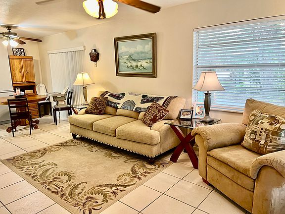 OAK TREE PLACE ~ Sweet starter home or investment rental. 2 Bd/ 1 Ba condo in a great part of town. Open concept, galley kitchen and dining area that opens to screened courtyard. Ceramic tile floors, stacking W/D. Spacious main bedroom has two closets, one walk in. New metal roof in 2023. HOA 155/mo. IT'S TIME TO BUY!