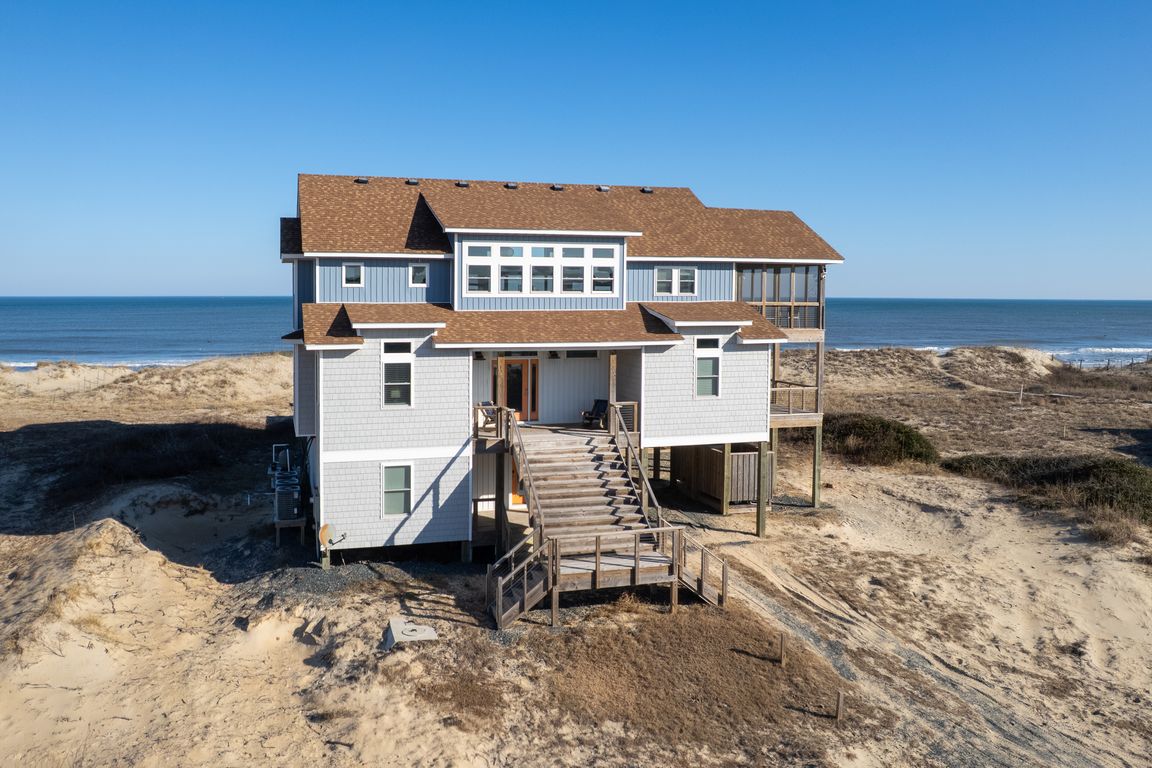 Building a 4,200 sq. ft. oceanfront estate in the 4x4 area of Carova requires a vision for both luxury and resilience. This 2022-built masterpiece, situated on the tranquil northern end of the beach, is a rare find that perfectly balances sophisticated design with the rugged spirit of the Outer Banks. Perched ...