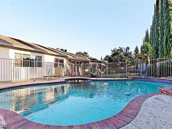 Welcome to this New Monterey 4 bedroom 2 bathroom home which boasts almost 1900 square feet of living space. This ONE STORY home has an open floor plan with large living spaces. The front of the home has a nice sized courtyard with a grassy area as well. Once inside the home it offers vaulted ceilings and plantation shutters on the living room windows. The Kitchen opens up to a family room that can be great for entertaining. Master bedroom has walk in closet and one of the rooms is equipped with built in cabinets and shelves. Inside laundry room and sink makes it very convenient. This house is on a cul-de-sac in a great location that is very close to the 118 freeway access. Backyard features heated pool and spa with a grassy area for children and pets. Standard sale and ready for immediate sale.