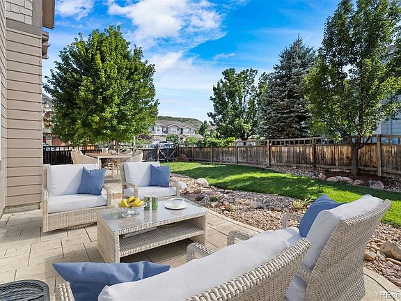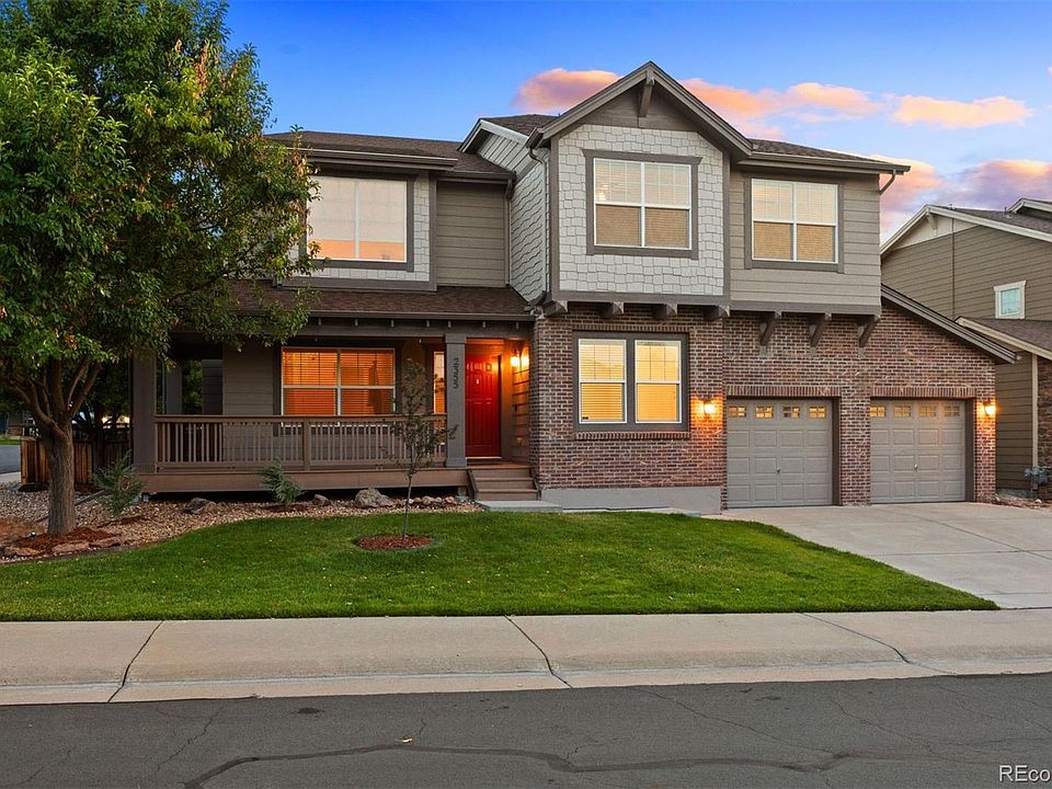 Discover the epitome of comfort and elegance in this stunning home located in the desirable Meadows neighborhood of Castle Rock. This corner lot features a 3-car tandem garage, a main floor office, and a charming wraparound front porch. The dining room is highlighted by a box window, adding a touch of sophistication and extra space for a large dining table. A kitchen with upgraded stainless-steel appliances and an eat-in area overlooks the backyard and seamlessly connects to the great room and the dining room. Upstairs, the spacious primary suite offers peek-a-boo mountain views, a large walk-in closet, and a 5-piece bathroom. Three additional bedrooms and a full bathroom provide plenty of extra space to accommodate family and guests. The fantastic backyard is perfect for enjoying Colorado’s sunshine with its large patio and multiple seating areas. Attention to detail and numerous upgrades which include freshly refinished hardwood floors and new carpet highlight this impeccably maintained home. Not to mention fully paid off solar panels! Enjoy the serenity of being close to open spaces, parks, trails, and an array of community amenities and the peace of mind of an included home warranty at closing. This home is the perfect blend of luxury and convenience, inviting you to make it your own.