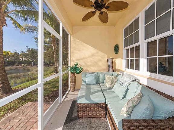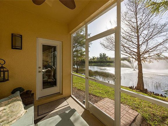 Beautiful light and bright 2 bedroom plus den, 2 bath, 1st floor condominium over looking a serene lake with fountain located in the conveniently located community of Mirasol at Coconut Point! Mirasol at Coconut Point is a wonderful gated community within walking distance to the popular Coconut Point Mall with its great restaurants, upscale shops, entertainment and more. Amenities include large clubhouse for entertaining, fitness center, billiards room, beautiful heated resort style pool with cascading waterfall and separate spa. PLEASE NOTE: Owner keeps car in the attached 1 car garage and is not available for tenants use. Driveway and guest parking available.