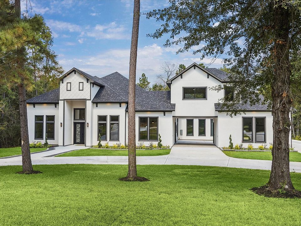 Exquisite new construction in the prestigious acreage community of High Meadow Estates. Set on over an acre with a motor court and porte-cochere, this home blends modern design with timeless craftsmanship. A chef’s kitchen with custom cabinetry, quartzite counters, and a 48” Italian range flows into a soaring great room with a gas fireplace. The owner’s suite is a retreat with spa bath, dual closets, and elegant finishes. European white oak floors, custom carpentry (no MDF), gold hardware, and smart energy upgrades—spray foam insulation, 16 SEER Trane AC, tankless water heater—deliver luxury and efficiency. Outdoor living is effortless with a large covered patio and full irrigation system. Community amenities include pool, tennis, trails, and clubhouse, all paired with a remarkably low 1.58% tax rate. Perfect for those seeking privacy, space, and prestige with modern comfort in Montgomery’s most desirable community.