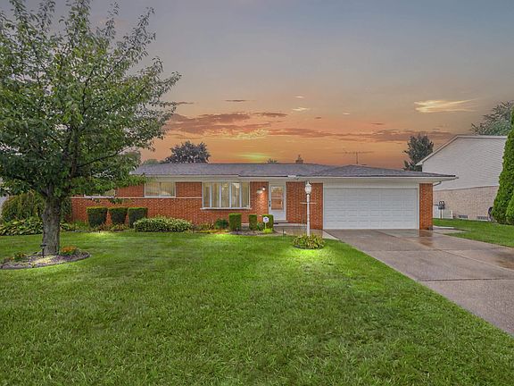 OPEN Sunday, November 23, 12 - 2:00 Meticulously Maintained full brick ranch, nestled in one of the area's most desirable neighborhoods, this full brick 3 or 4-bedroom, 2-bath ranch is a rare find—built and lovingly maintained by its original owner. The pride of ownership shows throughout, with a long list of recent updates: new roof, gutters, and downspouts (2024), garage door and opener (2022), newer windows, doors, furnace, A/C, and hot water tank, plus a new front porch and patio for enjoying the outdoors in style. Inside, you'll find gleaming oak hardwood floors in every room (except the baths)—they look brand new! The spacious kitchen features a built-in oven and cooktop, plus stainless-steel refrigerator and dishwasher. Cozy up in the inviting family room with a natural brick fireplace, perfect for relaxing evenings. Option for a 3- or 4-bedroom, 4th. bedroom is prepped for a first-floor laundry. A semi-finished basement spans the entire footprint of the home, offering incredible potential for additional living space, storage, or recreation, it even comes with a pool table. The home sits on a generous, beautifully landscaped lot with a sprinkler system to keep the lawn lush and green. Immediate occupancy.