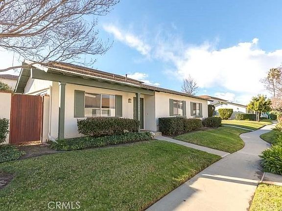 This 3-bedroom 2-bath home is located on the FIRST level of the Green Meadows West Community. Private entrance with a lush landscaped front yard, vaulted ceilings, and an open floor plan. Newer laminate flooring throughout and a private patio off the kitchen through a sliding glass door. The kitchen features modern white cabinetry, granite countertops, and tile flooring. The dining room table is located off the living room and kitchen with an open layout. The spacious master bedroom with master bathroom. Washer and Dryer hookups inside the unit. Detached 2-car garage with storage space. This quiet and well-maintained complex offers beautifully landscaped grounds and a private pool. Located near shops, local schools, and LA freeways.