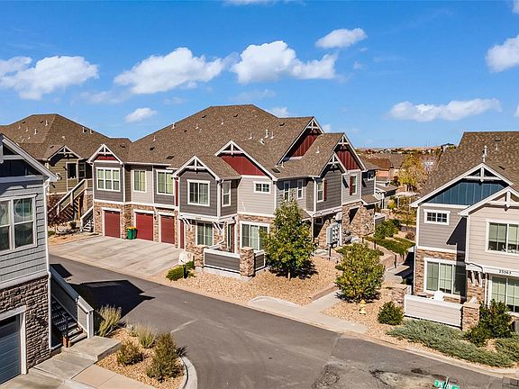 Welcome to the exquisite Sorrel Ranch community! This tucked-away gem blends modern style with everyday comfort. Step inside from the private side entrance to an abundance of natural light on the main level with beautiful modern flooring throughout. The entertaining friendly, eat-in kitchen features a large granite island, designer tile backsplash, and stainless-steel appliances. Cozy up by the gorgeous custom-tile fireplace that is the center piece of the living room. Step out to the private patio just off the dining area, perfect for morning coffee or afternoon grilling. Upstairs, you’ll find two spacious bedrooms, each with its own en-suite full bath and walk-in closet with generous storage. Thoughtful upgrades, like the open, elegant staircase railing, creating a clean, contemporary feel throughout. The laundry is on the main level. Also, the attached home accessible one-car garage plus driveway parking makes life simple. The pool is just a few steps away. Minutes to Southlands Mall, shopping, restaurants, and entertainment, with quick access to C-470 and DIA. All within the sought-after Cherry Creek School District. This is truly a turnkey property with standout finishes, luxury where it counts and comfort where you live. Don’t miss this one!