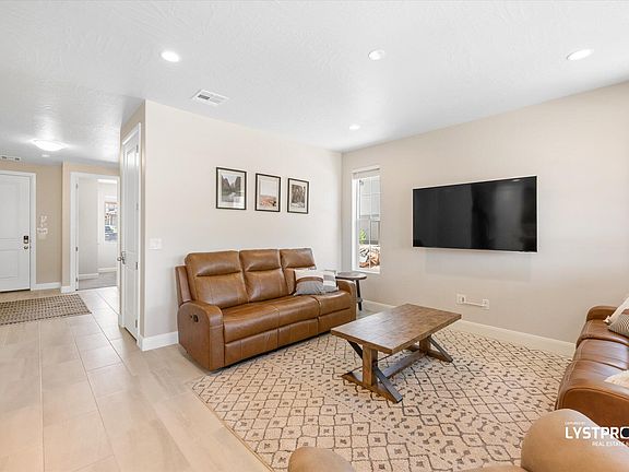 Enjoy beautiful mountain views from this incredible home that is FULLY FURNISHED with $30K worth of furniture and ZONED for NIGHTLY RENTALS! Located in Escondido, the association amenities include pickle ball courts, and a POOL AND LAZY RIVER which are currently being installed. About 16 min drive from Sand Hollow reservoir and sand dunes, 10 min drive to quail creek, about 50 min drive to ZION National Park and within a 20 min drive of 4 different golf courses, Coral Canyon golf course only 7 min away (Amenity map included in photos) There is short term trailer parking on a first come first serve basis close to the unit. Basically brand new and well maintained, this home features a spacious open floor plan, quartz counters, Alder soft-close cabinets throughout, premium tile, 9ft ceilings, tons of windows bringing in plenty of natural light, and more. The upstairs and main level heating and air can be controlled separately. The covered back patio is perfect for enjoying the unobstructed mountain views. The home backs to SILTA owned land that is unlikely to be built on due to the grade. Furniture package negotiable. Buyer to verify all information, deemed reliable, however buyer to verify all info including utilities & HOA information if applicable. The listing Broker's offer of compensation is made only to participants of the MLS where the listing is filed.