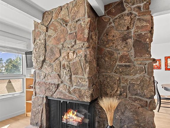Tucked away in the highly sought-after historic Hiwan Hearths neighborhood, this beautiful condo-townhome is filled with warmth and elegance. Upon entering, you’ll notice the newly installed wide plank luxury vinyl floors flowing throughout the main level. The sun-filled living room is highlighted by wood beam ceilings, with a stone floor-to-ceiling wood-burning fireplace at its center, creating the perfect spot for cozy evenings. The open layout makes entertaining effortless, with the living room opening seamlessly into the dining room, where a sliding door leads to a brand-new no-maintenance composite deck, ideal for morning coffee or soaking in the Evergreen surroundings. The recently remodeled kitchen is both functional and beautiful, with white and black cabinetry surrounded by white subway tiles, a farmhouse sink, slab granite countertops, and stainless-steel appliances, including a double oven. The hall closet has a stylish sliding barn door that adds a touch of rustic charm. Upstairs, the vaulted primary suite feels like a retreat, offering a generous walk-in closet and an updated three-quarter bath. A versatile second vaulted bedroom or office shares the upper level, along with a thoughtfully updated full bath and second walk-in closet. The lower level expands the living space with a comfortable family room, a third bedroom that opens to a private patio, another three-quarter bath, and a convenient laundry and mechanical room. Attention to details is evident with updated bathrooms, new deck, and a design that makes this home move-in ready. A detached 2-car garage adds convenience and space for a golf cart or extra storage. The location is a short walk to the golf course and only minutes by car to downtown Evergreen, scenic hiking trails, and access to I-70 for world-class skiing, endless mountain adventures, or an easy commute to downtown Denver. A rare find in Hiwan Hearths, this updated condo offers the perfect combination of comfort, style, and location.