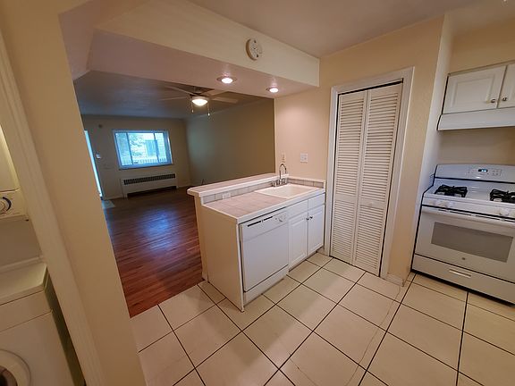 Includes stove, refrigerator, dishwasher, stacked washer and dryer, blinds, hardwood floors, carpet and tile and assigned off-street parking.