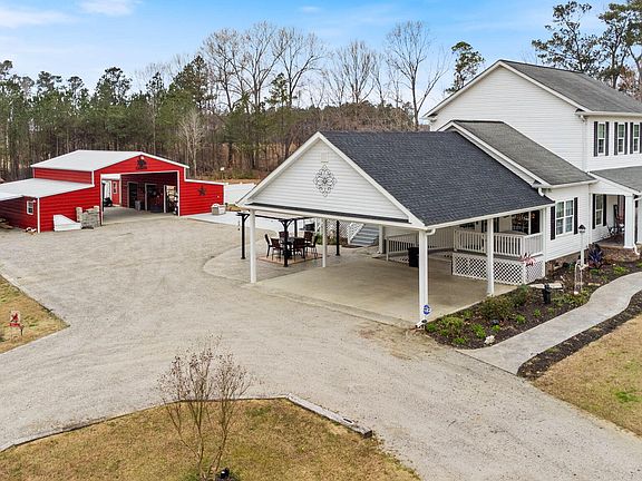 Welcome to the perfect estate for equestrian enthusiasts. Indulge in your passion for horses, with this rare opportunity to possess five acres boasting a fenced pasture, pond, horse barn, and expansive home. With four bedrooms, two and a half baths, this stately home totals 2829 square feet. Kitchen with bar seating and breakfast nook, granite countertops, gas stove, stainless appliances, and island with prep sink. Beautiful dining area in open concept style. Two family rooms, one with a fireplace, a heated/cooled sunroom off of the family room. Walk in closets in multiple bedrooms. Large windows bring in natural light and give way to picturesque views from every side of the home. Sitting on a beautiful hill, overlooking an across the street view of neighboring horses and pasture, and another large pond. Savor summer nights on the screened in porch or enjoy entertaining on the additional covered rear porch, overlooking the inground pool with slide. The barn boasts a tack room, 1/2 bath, and three horse stalls. Enjoy a relaxing day by the pool, relish in a night of evening entertaining by the fire pit, or delight in the comfort of this upscale home. Includes a Generac whole home generator, an additional metal 4 bay equipment shed/open garage, and two detached storage buildings. Located just an hour from the local beaches, in southeastern North Carolina, this rural paradise has it all. Your opportunity to enjoy this rare find awaits.