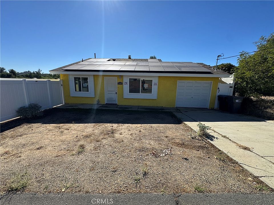 23561 Clara Place, Canyon Lake CA 92587 — a beautifully updated, energy-efficient single-story home featuring solar panels, EV charger, and a fully fenced yard for privacy. This move-in-ready residence blends modern design with low-maintenance living. Inside, the open floor plan showcases elegant porcelain marble-look tile flooring, white shaker cabinetry, quartz countertops, and a spacious center island kitchen—perfect for entertaining. The bright living area includes a brick fireplace and crown molding for timeless style. Enjoy an expansive backyard with multiple patios, mature shade tree, and a finished storage shed with windows and power—ideal for a workshop, gym, or home office. The property also offers a one-car garage equipped with a Level 2 EV charging station and ample driveway parking. This home is powered by solar energy, helping lower utility costs, and located minutes from Canyon Lake’s private parks, schools, and shopping. With its modern upgrades and efficient systems, 23561 Clara Pl is the perfect balance of comfort, sustainability, and California lifestyle.