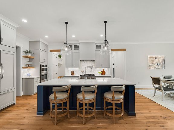 Welcome to Waterstone Manors, where luxury meets comfort and nature embraces your backyard. This meticulously crafted home is exceptional, designed to exceed expectations and is truly better than new construction. The main level open floor plan seamlessly flows amongst the family room, kitchen, primary suite, guest suite, and study. The kitchen is equipped with stainless steel Jenn Air appliances and features quartz countertops, custom cabinetry, tie backsplash, and center island. Don't miss the scullery pantry! The family room is highlighted by 10-foot ceilings with stained wood beams, a tiled gas log fireplace, and 16-foot sliding doors that leads to the screened porch with custom vaulted wood ceiling. The first floor primary suite has incredible views of the wooded lot. It is comfortable and luxurious, offering an ensuite bathroom with floating vanity, freestanding soaking tub, and tiled shower. The garage is sure to impress with custom touches throughout including the epoxy flooring, built-in cabinetry, hall tree, and golf bag and shoe storage with built-in bench seating. Upstairs, you'll find an expansive rec room with glass French doors, wet bar, an exercise/play room, and a second study, along with two spacious additional bedrooms. This pool ready lot along with it's unparalleled beauty and exquisite attention to detail is ready for you to call home. Welcome!