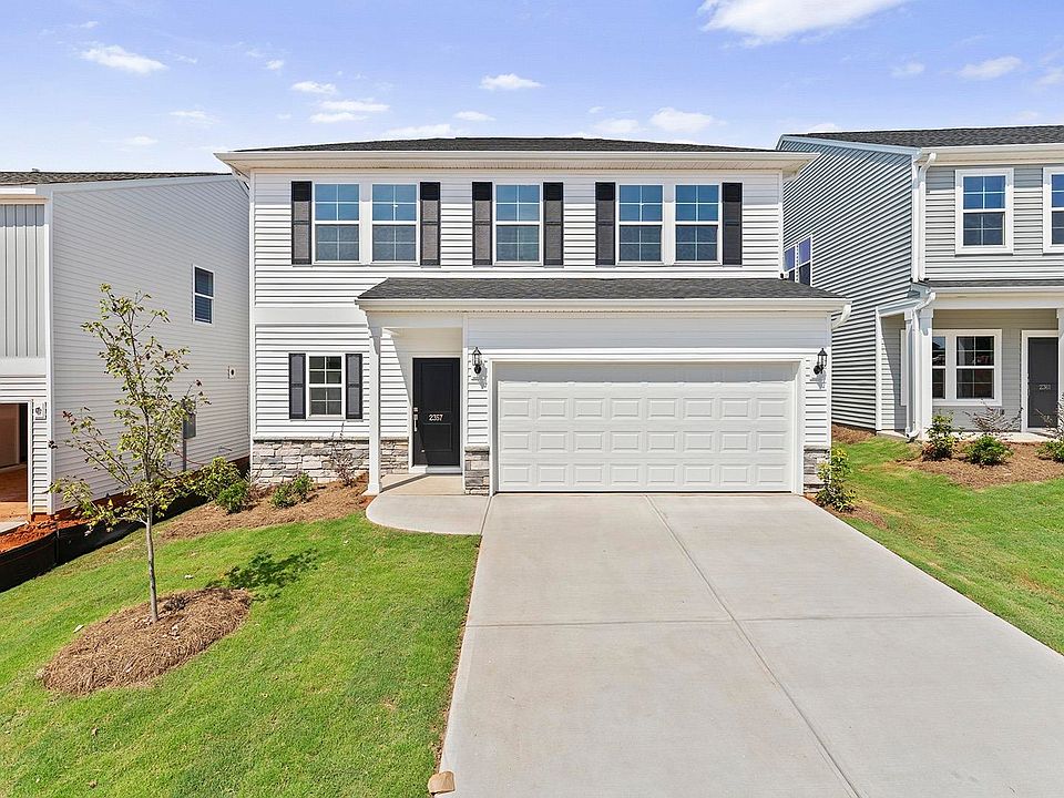 The Rutherford floorplan is a two-story, five-bedroom, three-and-one-half-bathroom home. The nine foot ceilings on the first floor comes with a roomy kitchen with shaker style cabinets and ample counter space along with a large island that opens up to the great room and separate dining area. The primary bedroom suite on the main floor features a large walk-in closet, dual vanities, a walk-in shower, and water closet! The laundry room is conveniently located on the main floor. The additional four bedrooms upstairs have spacious closet space and share two full bathroom. The loft on the second floor provides a second entertaining space. The covered porch out back gives you space to enjoy those sweet South Carolina evenings. Find your new home at Mayfair Village, a gated community in Spartanburg! New homes in Mayfair Village range from 1,500 to over 2,600 square feet. Future amenities include a pickleball court, dog park, pool and cabana. Mayfair Village is only a four minute drive from Westgate Mall, and where you can shop at all the national stores and nine minutes from Wofford College and Spartanburg Medical Center. This new community is accessible to both interstates, I-26 and I-85 and is zoned for Dorman High School which is 10 minutes down I-26.