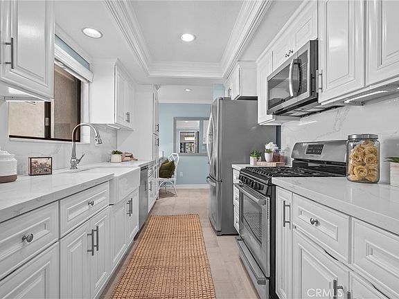 Welcome to an exceptional opportunity to enjoy a bright, remodeled end-unit home in the heart of coveted Lunada Bay. Offering a remarkable blend of indoor luxury & outdoor living, this 3 bedroom, 2 bathroom residence spans 1,619 square feet of refined single-level living, plus a private 600 square foot garden patio rarely found in a condo. Enter through a spacious foyer into an inviting, open-concept layout designed for comfort & elegance. The dining area flows into the generous living room, warmed by a cozy gas fireplace, featuring wide-plank neutral flooring, fresh paint, crown molding & recessed lighting. A private balcony off the living area welcomes refreshing ocean breezes & offers charming neighborhood & sunset views, perfect for relaxing at the end of the day. The bright, modernized kitchen is a true centerpiece, featuring crisp white cabinetry, deep farmhouse sink, elevated fixtures, sleek white & gray quartz counters & backsplash, & stainless steel appliances including gas range & refrigerator. A built-in desk doubles as a breakfast nook, ideal for casual dining or working from home. Down the hall, a side-by-side laundry closet includes the washer & dryer, along with ample linen storage & stylishly remodeled bath servicing the living space & secondary bedrooms, offers dual sinks, quartz countertops, honeycomb tile flooring & gleaming white subway tile backsplash. Each bedroom is spacious & light-filled, with mirrored closet doors enhancing the sense of openness. Your primary suite is a private retreat, complete with a large walk-in closet with built-in organizers, a mirrored dressing area & an ensuite full bath with dual sinks, quartz counters & private water closet. The generous garden patio is well-connected here, beautifully tiled to extend the living space, with vibrant landscaping, palm trees & sunshine, perfect for entertaining, gardening, or simply enjoying a life well-made. Additional features include 2 side-by-side gated underground parking spaces, a large private secure storage room & elevator access for effortless, stair-free living. Just 1 block from Lunada Bay Plaza with its quaint shops, restaurants & services, 3 blocks from the breathtaking ocean bluffs, this condo offers a rare lifestyle of convenience & beauty. Easily accessible to all 3 prestigious local elementary, middle & high schools. Move right in & start living the good life in Palos Verdes Estates, where ocean breezes, sunset views & a vibrant coastal community await.