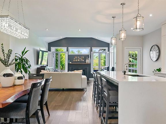 Welcome to The Woodhaven Estates, where executive living meets natural serenity in one of Oakville's most coveted neighborhoods. This exceptional three-bedroom, four-bathroom freehold townhome showcases over $200,000 in thoughtful renovations, creating a perfect harmony between luxury and comfort. The heart of this home lies in its completely reimagined open-concept main floor. The stunning custom kitchen commands attention with its Quartz countertops, expansive island, and premium stainless steel appliances. Updated light fixtures illuminate the space, while soaring high ceilings create an impressive sense of grandeur. Engineered hardwood floors flow seamlessly throughout, connecting the combined dining and living areas adorned with elegant California shutters and a striking gas fireplace with mantle. Natural light floods through large windows, creating an inviting atmosphere that extends to the fabulous deck overlooking your private treed ravine lot. Here, you'll discover breathtaking views of Sixteen Mile Creek, offering a daily dose of tranquility that feels worlds away from city life. The second floor presents three well-appointed bedrooms, including a luxurious primary suite featuring a four-piece bathroom and generous walk-in closet. The renovated lower level boasts nine-foot ceilings, a convenient Murphy bed, three-piece bathroom, and cozy gas fireplace, creating versatile space perfect for a private guest suite with its own walk-out access to the lower backyard. Practical conveniences include main-floor laundry with garage entry and a Tesla Level 2 charging station for modern living. This exclusive neighborhood offers exceptional amenities including an upcoming recreation center, top-rated schools, and easy access to Heritage Trail and Lions Valley Park, ensuring every lifestyle need is beautifully addressed.