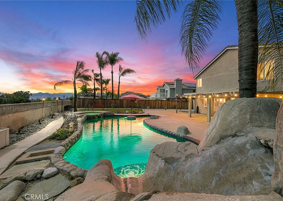 This lovely Murrieta pool home has everything you need and want. Remodeled kitchen and downstairs bathroom, upgraded PEX plumbing throughout the first floor, 4 bedrooms and 2.5 bathrooms. The primary suite has a walk in closet, dual sink vanity and soaking tub with views of the backyard and valley. Outside is the best part! The HUGE backyard offers a large pool with a jacuzzi and waterslide, patio cover, built-in BBQ, large storage shed and plenty of space for hosting or making it your own oasis. The backyard views are beautiful, especially during the sunset hour. This home also has an upgraded 200AMP electrical panel, EV charger and a spacious 3 car garage with a large driveway. Another BONUS, LOW TAXES and NO HOA! It's centrally located on Clinton Keith, between the 215 and 15 freeway, with easy access to local shopping centers and wonderful Murrieta Schools. Don't miss out on this GREAT home that has SO much to offer!