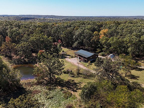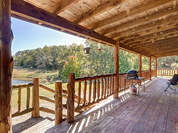 Experience peaceful country living with this stunning log home on 40 acres in Cedar County, just west of Humansville! This spacious 3-bedroom, 3-bath home features warm rustic charm throughout with beautiful woodwork, a split bedroom floorplan, and an open living area. The large kitchen offers abundant cabinetry, an island, and all appliances, flowing easily into the dining area and impressive living room with vaulted ceilings. The main-level primary suite includes a walk-in closet, jacuzzi tub, and ensuite bath.The walkout basement adds exceptional versatility with two non-conforming bedrooms, an office, a full bath, a second living area, and a concrete storm shelter/safe room. The basement just needs some new flooring to finish it. Enjoy morning coffee or evening sunsets from the front deck overlooking the stocked pond where deer and turkeys are frequent visitors!Approximately 60% of the acreage is timber, with the remainder in pasture--ideal for livestock or recreation. The property also includes a chicken coop, fruit trees, a garden spot, RV hookups, and sites suitable for a mobile home or tiny house if desired. Secluded and private, the home is not visible from the road, yet conveniently located just 20 minutes from Bolivar and less than an hour from Springfield or Clinton. Stockton Lake, Pomme de Terre Lake, and Brush Creek Conservation Area are all nearby offering endless outdoor opportunities. Enjoy the best of both worlds--modern comfort and serene country living!