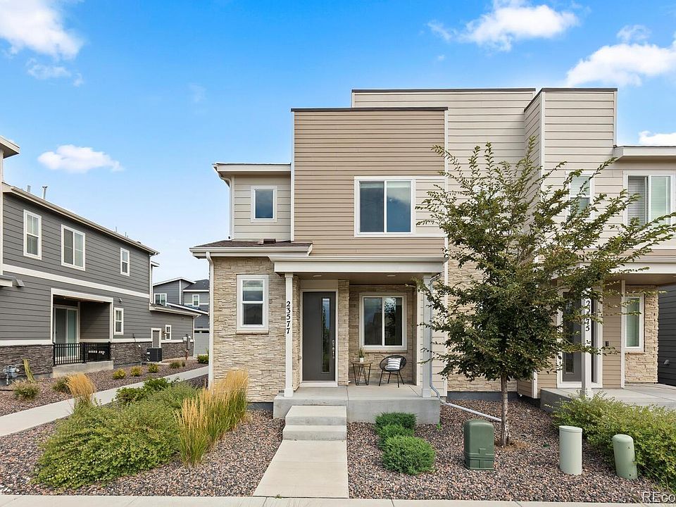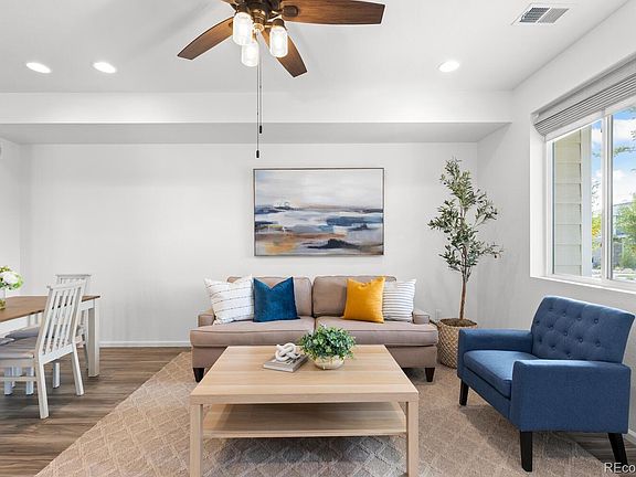 Discover low-maintenance living in this light-filled end-unit townhome in Aurora’s centrally located Cross Creek community. Better than new and loaded with high end finishes and thoughtful craftsmanship, this home is a must see! Inside you'll find soaring 10’ ceilings, durable LVP flooring, designer light fixtures and an open concept layout that creates a bright and inviting atmosphere. The chef-inspired eat-in kitchen shines with an oversized island with bar seating, quartz countertops, stainless steel appliances, a pantry, and crisp white cabinetry providing ample storage. A spacious dining area flows seamlessly into the inviting living room, while a dramatic floor-to-ceiling 4-panel sliding glass door connects your indoor and outdoor living spaces. Step outside to the extended patio and enjoy your own summer retreat. A powder bath and oversized under-stairs storage with crawl space access complete the main floor. Upstairs, the primary suite is a private sanctuary with crown molding, dual vanities, upgraded tile, and a glass-enclosed walk-in shower. Two additional bedrooms, a full bath, and a convenient laundry room provide plenty of space for family or guests. Additional highlights include an attached 2-car garage, new carpet, a new roof and access to premium community amenities—clubhouse, pool, park, playground, and basketball court. With easy access to Anschutz Medical Campus, DIA, and Downtown Denver, Cross Creek is one of the metro area’s fastest-growing communities. This home has it all—style, comfort, and convenience. Don’t wait—now is the time to make Cross Creek your home!