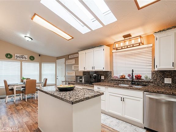 Beautifully maintained home with spacious rooms to enjoy lake living at Heritage Ranch, just 25 minutes west of downtown Paso Robles. With 2260 +/- sq. ft., this home is one of the largest manufactured homes in the neighborhood and priced to sell quickly. A wood burning fireplace is the focal point for the large living and dining room. The kitchen has tons of cabinet storage with granite counters, laminate wood flooring, an island and breakfast nook. The low-maintenance front yard and back patio leave you time to enjoy all of the outdoor activities offered at Heritage Ranch. The home is just steps away from the community pool, park, tennis courts and horse stalls and backs up to the oak-studded green-belt offering both serenity and privacy. This home has a newer HVAC, sump pump, artificial front lawn and washer, dryer. Come take a look at all this home has to offer in this recreational, gated-lake community.