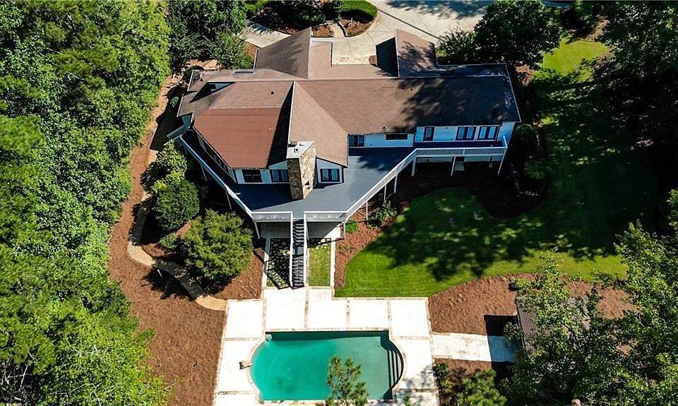 Nestled on a breathtaking 7.5-acre lot, this 7,500-square-foot residence offers a privet and spacious lifestyle. With 7 bedrooms and 7.5 bathrooms, there's room for everyone in this open and inviting floor plan. The master suite is a true retreat with its beautifully renovated bathroom, his and hers walk-in closets, and a sun-drenched sitting area surrounded by windows. Throughout the first floor, gleaming hardwood floors exude elegance, while the basement houses a sauna, shower, and wine cellar adjacent to the bar area, providing the ultimate entertainment space. For guests or extended family, a separate guest house above the three-car garage offers all the comforts of home. Tennis courts and the property's private lake with a dock and a splendid swimming pool make outdoor recreation a breeze. Plus, don't forget the extended wrap-around deck, perfect for enjoying the outdoors and taking in the stunning views. With no subdivision restrictions, this property offers unmatched privacy and serenity. Moreover, the location offers the best of both worlds, being close to the high-end area of Milton while enjoying the lower taxes of Cherokee County. This property is not part of any subdivision, ensuring privacy and serenity in a lush, tree-filled landscape. In essence, this property presents a grand opportunity for a life of luxury, nature, and tranquility. Sellers are open to any and all offers and are ready to negotiate!