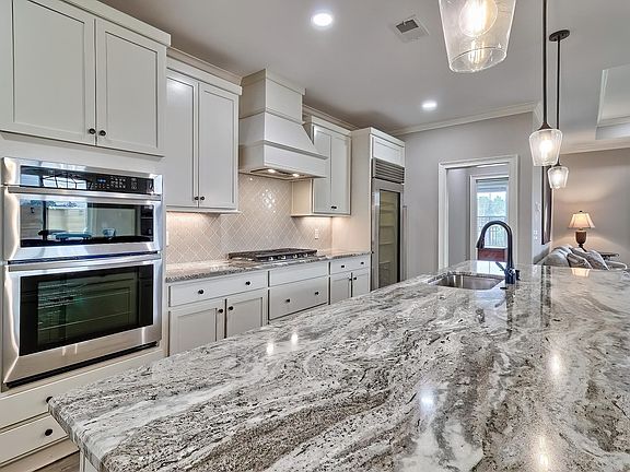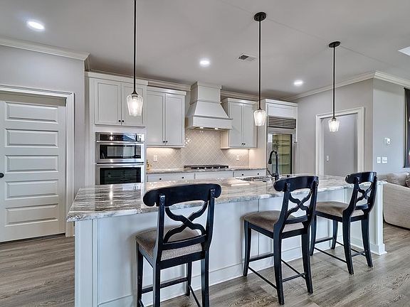 Spacious kitchenLarge islandStainless steel appliancesCustomized tray ceilingFour bedroom homeOpen floor planQuartz countertops