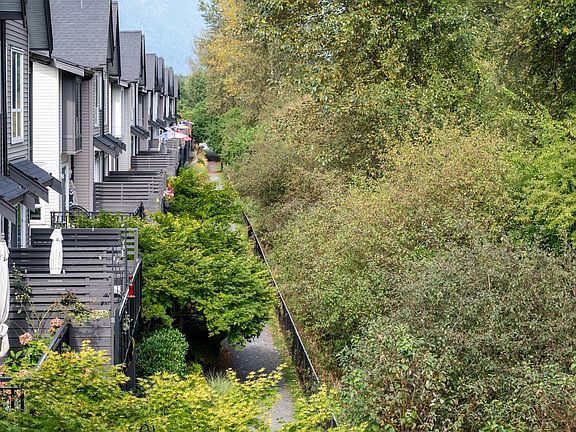 Truly VERY Special location in this COMPLEX! Perfect Family Home, 3 Bedrooms on Upper floor+ 3 Bath in Fremont INDIGO by Mosaic! This Unit located in private greenbelt area, behind Dominion Park and River CLUB with 12,000+ sq ft of amenities: playground, clubhouse, outdoor pool, lounge with kitchen, basketball, indoor children playroom, gym and scenic trails along the river. Bright Open Concept with spacious and wide Living/Dining/Kitchen area, big Balcony and Powder ROOM on main. High 9' ceiling. 2 car garage & extra Visitor Parking across the unit. CONVENIENCE with Bus to Coquitlam Centre Station in front of complex, Walmart, Costco, all w/in 5 min walk and 7 min drive to #1 HWY. Fremont is truly a family-oriented community with FRIENDLY NEIGHBOURS! EASY TO SHOW EVEN WITH SHORT NOTICE