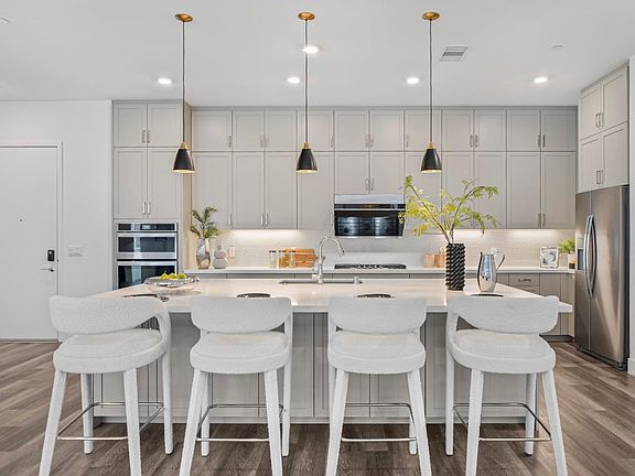 Welcome to Metro Crossing Luxury Urban Living in Fremont! Discover this stunning 2-bedroom, 2-bath condo with 1,725 sq. ft. of single-level living and soaring 10-ft ceilings. Built in 2021 by Toll Brothers, this home blends modern design with everyday comfort. The open floor plan extends to an oversized covered balcony perfect for indoor/outdoor living. The chefs kitchen boasts a massive quartz island with breakfast bar, ceiling-height cabinetry, quartz countertops with stone backsplash, stainless steel appliances, and a large pantry. Both bedrooms are private suites at opposite ends of the home. The primary suite includes a walk-in closet, dual sinks, and a glass-enclosed shower. The equally spacious secondary suite has convenient access to a generous hallway bath ideal for guests. Additional highlights: Private 2-car side-by-side garage with EV charging; In-unit laundry with washer/dryer hookups & cabinets; Gated building with elevator Resort-style amenities; Clubhouse with event spaces, fitness center, lap pool, BBQ, landscaped common areas. Features a top-rated 10/10 elementary and 8/10 high school; Steps from Warm Springs BART, with easy access to I-680/880, major tech campuses, and shopping/dining. More than a condo - this is modern, convenient, elevated living.
