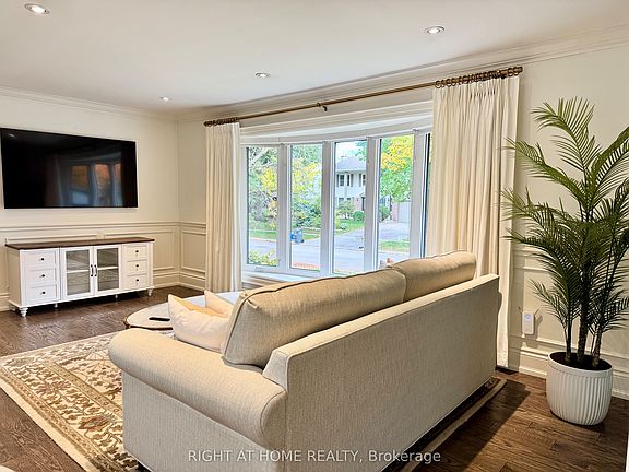 Beautiful, fully renovated family home in South-East Oakville! Features a bright side-split layout, open-concept kitchen/dining/living area, family room with yard access, 3 bedrooms, 2.5 bathrooms, a den, and finished laundry room. Upgraded throughout with wide-plank hardwood, quality slate/marble/porcelain floors, custom millwork, built-ins, and Pollard windows. Double doors open to a high-ceiling foyer and mudroom with built-ins and garage access. Main floor includes a stylish kitchen with Caesarstone counters, island, farm sink, marble backsplash, skylight, and stainless-steel appliances.Upper level has 3 bedrooms with custom closets and a luxurious 5-piece bath. Lower level offers a spacious rec room, play area, den, and upgraded laundry room with 3-piece bath.Fenced yard and a Rain Bird 7-zone irrigation system complete this ideal family home.