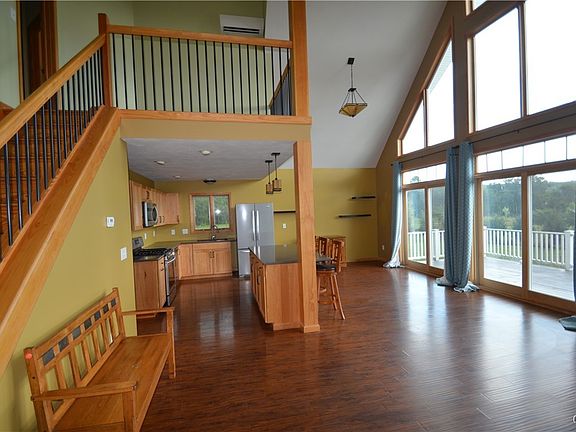 Situated high on a hilltop this magnificent home with three living levels offers views for miles all in the Marcellus School District. So close to the villages of Marcellus and Skaneateles this hard to find property features four bedrooms, three full baths, radiant floor heating, AC, solar panels for electric supply, two kitchens, and a spectacular wall of windows in the main level great room. The kitchen has all appliances with granite countertops and a custom built in breakfast bar area complete with Tiffany pendants and matching Tiffany ceiling lights. Cathedral ceiling in the great room and the master bedroom. A delightful loft area adjacent to the master bedroom offers 360 views of the countryside.