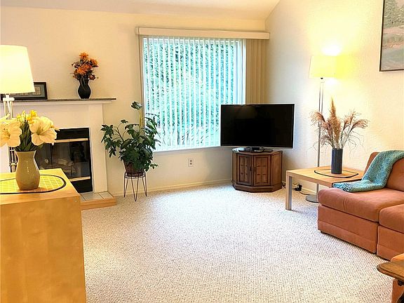 This centrally located 2 bedroom, 2 bathroom condo features a warm and welcoming atmosphere with vaulted ceilings, gas fireplace, attached garage, and on-demand water heater. The laundry room is large and the dining room looks out onto a semi-private lawn. The location is near the bus line, trails, and popular shopping and cinemas. This home has been well-cared for. Can be rented. Furniture included in sale (if desired).