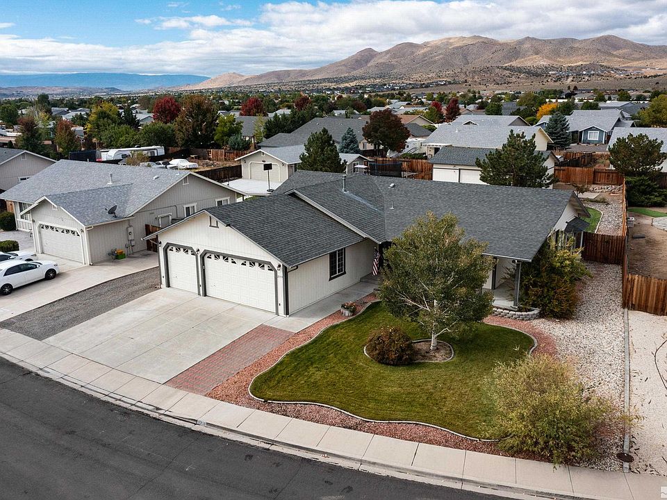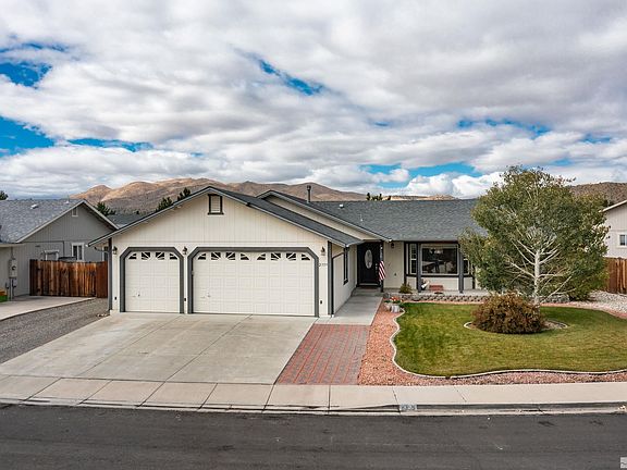 Make this home yours today. Move-In Ready. Well maintained 3-bed 2-bath 5-car home in Eagle Canyon. Home base for your active lifestyle. Recently updated with new Pergo flooring, improved fencing, and refreshed interior paint. Enjoy your wrap around porch and large concrete patio stubbed for gas. Convenient location to shopping, schools, restaurants, banking, emergency medical, grocery, and outdoor activities. Just minutes from world class fishing, boating, camping, at Pyramid, Lake, go 4-wheeling at Moon Rocks, or 1-hour from all that Lake Tahoe offers. This home includes an oversized insulated detached 3-Car garage with steel workbench and led lighting, network connection, with room for toys, hobbies, and storage. Upgraded electricity service to 220 V in both garages. Additional RV parking/driveway behind the fence included. This home includes additional appliances with no warranty or value- 2 Refrigerators, 1 Freezer, 1 Washer, 1 Dryer, 1-Stove w/oven. Mornings will start your day at the breakfast bar and nook in kitchen. Watch the sunset over the mountain from your patio at end of day. A second patio and garden area are part of the landscaped yard. It's all here and ready now. Agents please see Private Remarks.