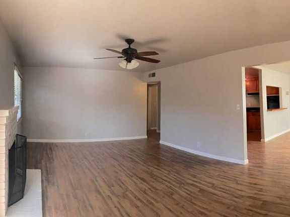 Spacious & Lovely 3br 2bth Floor plan! Featuring large Living Room w/Fireplace, Kitchen & Dining Room, Ceiling Fans, New interior paint & flooring throughout, New hall bath sink/vanity/toilet & newly refinished tub. New Garage Door, New front landscape/irrigation & clock. Updates in 2016 include: New Blinds, Kitchen counter/sink/stove/oven. Updates in 2015 include: New Dishwasher, New Roof, New Central A/C, New windows. Nice size Backyard w/covered patio. Security Alarm ready, Washer/Dryer/Refrigerator 3yrs New included.