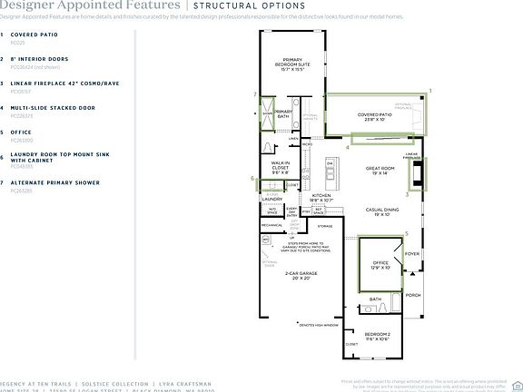This single-story, open-concept home boasts luxurious designer appointed features throughout including beautiful engineered hardwood floors in the great room, bedrooms, and office. The stunning kitchen is highlighted by double-stacked white cabinets with pullout drawers, Ash gloss tile backsplash, Grigio Elegante honed quartz countertops, and upgraded JennAir appliances. The great room features a cozy a gas fireplace and is a perfect atmosphere for entertaining, with connectivity to the dining area and expansive views of the outdoor living space. Creating seamless indoor-outdoor living, the multi-panel stacking glass doors lead to a large covered patio with heaters, enhancing your outdoor experience. The spa-like primary bath offers 12" x 24" tile flooring, luxurious shower walk-in shower, and a large vanity with two under-mount sinks and frost quartz countertop. The resort-style amenities in this community will make you feel like you are on vacation year-round. Discover what luxury living truly means and schedule a tour of this beautiful home. Disclaimer: Photos are images only and should not be relied upon to confirm applicable features.