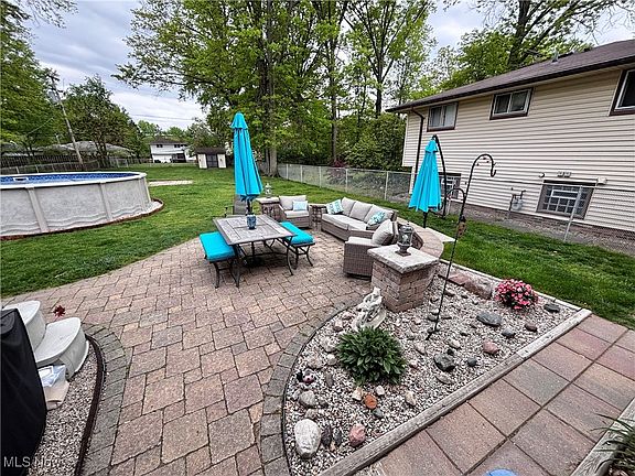 your Huge Fully Fenced in Yard with Above-Ground Pool and Gorgeous stone Patio for all Your Summer Entertaining!