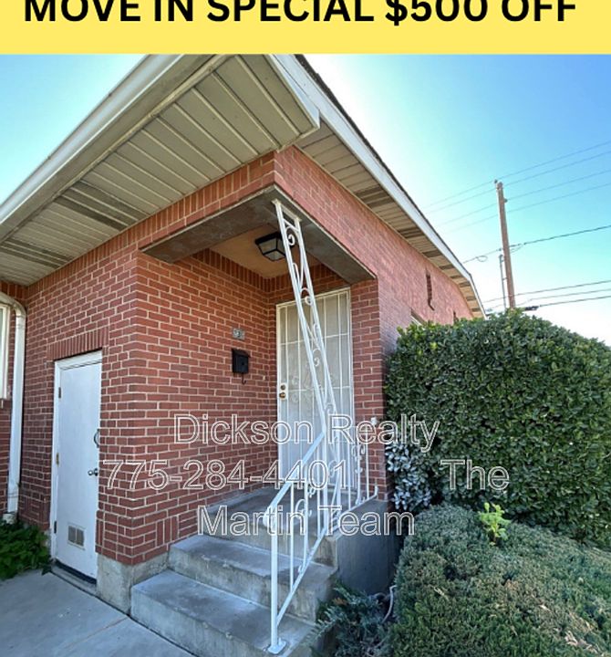 Available Now!! MOVE IN SPECIAL: $500 OFF OF FIRST MONTH'S RENT! Cozy apartment centrally located in Sparks. This apartment features 2 bedrooms, 1 bathroom and a 1 car garage. The bathroom is newly remodeled, and the kitchen includes a new counter and fresh paint for the cabinets. Hardwood floor throughout. Close by to parks, schools, shopping and dining!! Victorian Ave is a short drive away for fun year-round events. Community laundry and a refrigerator are available for tenants use. One small pet on approval. Schedule your tour today!
