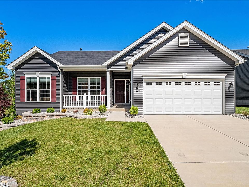 Spectacular and spacious 4-bedroom, 2 bath great room ranch less than 2 years old w/ open floor plan, soaring ceilings, beautiful wood engineered floors and over $140,000 in upgrades! Large ranch located on a premium cul de sac lot with walkout lower level with private views from your upgraded spindled deck. Designer kitchen with 42” soft close cabinets, crown molding, GE profile SS appliances, 5 burner gas cooktop, double ovens, ceramic stone backsplash, granite countertops, under cabinet lights and walk-in pantry, plus overlooks a sun - lit breakfast room with large bay window. Spacious master bedroom suite offers an appealing retreat with adult height double bowl vanity & a large shower and tub. The upgraded hall bath also offers a raised vanity!! Additional upgrades include can lights, 9 ft ceilings, sprinkler system, wrought iron spindled staircase into the lower level with a glass slider & extra windows, roughed in bath, 2 car oversized garage, walking distance to Castlewood Park
