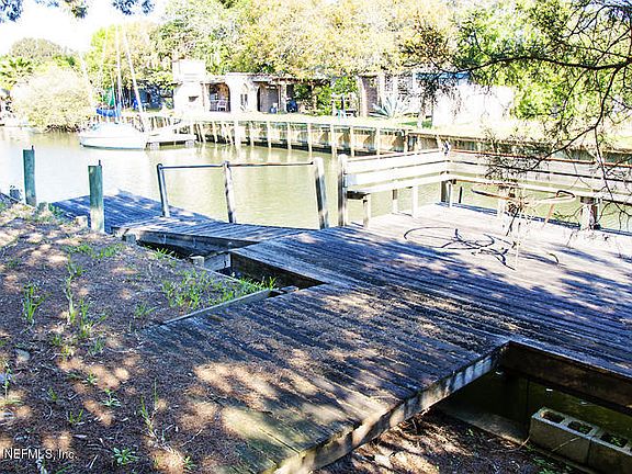 Two floating docks and a concrete bulk head on a navigable saltwater canal that leads to the ICW. This home site with beautiful wind swept oaks is the perfect setting to build your new home.