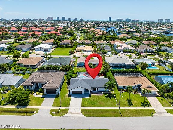 LOCATION, LOCATION, LOCATION! This completely remodeled Marco Island home features all brand new kitchen appliances, including a wine cooler, with stunning quartzite countertops. All bedrooms and bathrooms have been beautifully remodeled, including an extravagant master bathroom with a custom walk-in shower. The master bedroom boasts a spacious walk-in closet and sliding glass doors that lead to the screened-in patio and pool. The home offers an expansive backyard and lanai, perfect for relaxation or entertaining. The screened pool area features a newly resurfaced deck and modern LED lighting. Inside, you'll find three bedrooms, two baths, and a two-car garage with ample storage. Recent upgrades include NEW impact windows and doors, a new garage door, and a roof replaced in 2017. This move-in ready home is conveniently located near top-rated schools, with quick access to Naples, and just a short distance from Residents' Beach and popular dining spots.