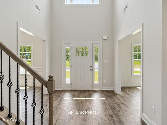 Welcome to the highly desired & popular community of Onslow Bay. Brand new construction built by Onslow County's most trusted & preferred builder. Onslow Bay is a hot spot, 3 miles to MCB Camp Lejeune's Piney Green gate, 14 miles to New River Air Station & minutes to area schools, shopping & dining. This beautiful neighborhood is sure to impress, complete with a clubhouse area & community pool. Welcome to the Haley. 4 bedroom/2.5 bath, approx. 3350 heated square feet. This big, beautiful floor plan boasts a charming & stately front porch. Enter a grand 2-story foyer illuminated by natural light. Ideal formal areas, dining room & formal living room. Wide open space from the gorgeous kitchen, keeping room, breakfast area & family room. The kitchen is sure to impress with staggered flat panel cabinets & an island for extra seating. Stainless steel appliances include a smooth top range, microwave & dishwasher. The cozy keeping room sets the mood featuring a fireplace with a custom mantel. Enjoy your morning coffee on the 16 x 10 covered back porch. Up the alluring staircase to a massive 17 x 14 master suite featuring an adorable sitting area. Master suite also features a luxurious master bath with double vanity, separate tub, shower, toilet & linen closet. Huge 11 x 13 walk-in closet. Bedrooms 2, 3, & 4 have generous closet space & all are prewired for ceiling fans. Bedroom four also opens to the hall bath. 2nd floor laundry. 2-car garage. The Haley is a must-see plan. Call today. NOTE: Floor plan renderings are similar and solely representational. Measurements, elevations, and specs may vary in final construction. Limited selections for buyer to choose. Call L/A to verify.