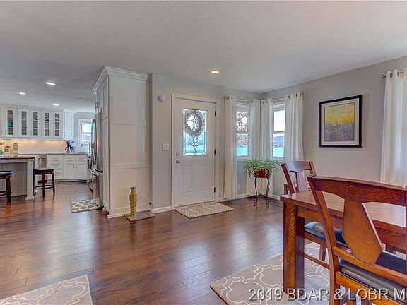 The LakeHouse of your dreams! Hardwood floors, designer kitchen w/granite counters and island for additional seating. High-end stainless appliances and a pantry! Powder room off the dining area makes this a lovely floor plan to entertain guests. You will love the large master with walk-in closet and bath straight out of HGTV! Fabulous white tile and glass doors on the walk-in shower as well as an air-jet tub. The living room leads out to the screened in porch w/ vaulted ceiling and wood accent wall. You will know you have arrived in paradise when family and friends gather in this large relaxing space taking in the huge views of the Lake. Lower level offers 2 more guest rooms (non-conforming) 2 full baths as well as family room with slider doors to another covered patio. Level lot and DEEP WATER under 2 well dock, Garage space for 4+ cars, additional storage, and blacktop to the door! Big Niangua 5MM is the "quiet side", has a private boat ramp, and stairs off the seawall for swimming!