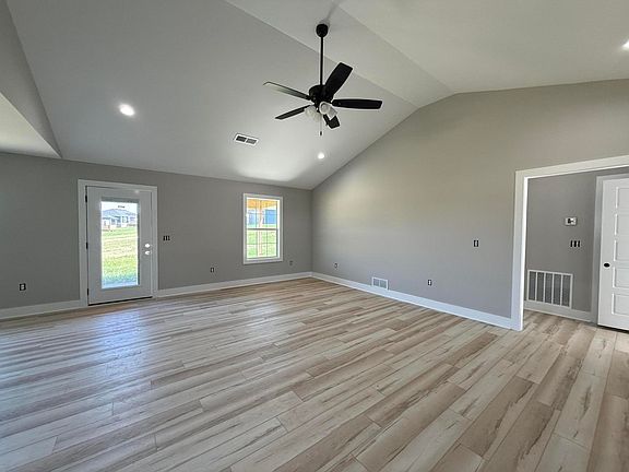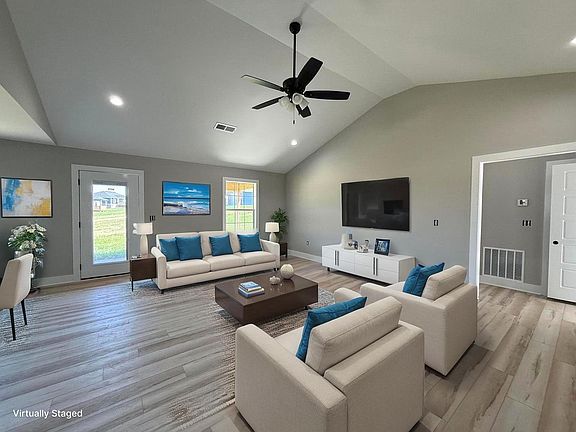 Welcome to this beautiful new construction home in Stoney Creek! This home offers a stunning foyer entrance and LVP floors throughout. The spacious living room features a vaulted ceiling, while the kitchen is equipped with stylish black cabinetry, stainless steel appliances, a large island, and granite countertops. Designed with a split bedroom layout, the primary suite boasts a tray ceiling, tiled shower, walk-in closet, and double vanity for ultimate comfort. Enjoy outdoor living on the flat lawn with a covered back patio. Dual fuel HVAC and tankless water heater ensure low utility bills to